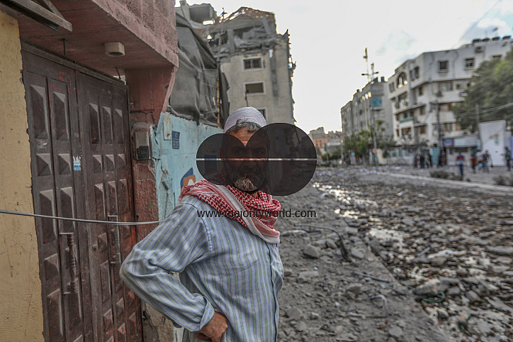 • Image Description: A man looks on sadly at the the damage to the Palestinian Ministry of Health building and Al-Rimal dispensary, as a result of an Israeli airstrike on a target next to the ministry. Gaza City.