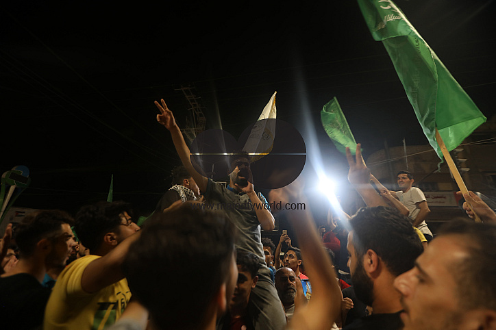 Gaza City. 21st May 2021. People take to the streets to celebrate following a ceasefire brokered by Egypt between Israel and the ruling Islamist movement Hamas in the Gaza Strip.