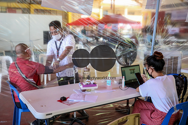 • Image Description: Medical workers inoculate health personnel and frontliners using Sinovac vaccines at the Batasan Hills National High School. Manila, Philippines.