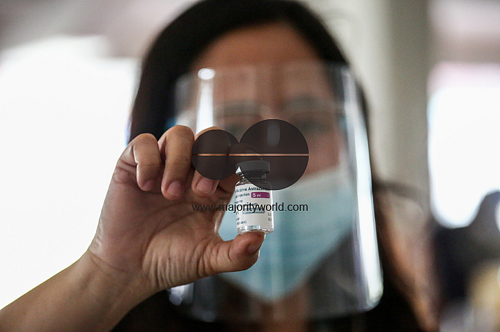 A nurse holds a vial containing a dose of the Sinovac COVID-19 vaccine during a vaccination program inside a sports stadium in Marikina City, east of Manila, Philippines.