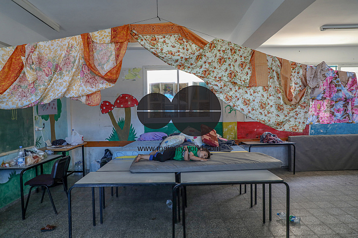 • Image Description: Palestinian families live in the UNRWA school because their homes were completely destroyed during the Israeli aggression on Gaza. Gaza City.