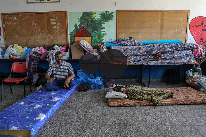 Palestinian families live in the UNRWA school because their homes were completely destroyed during the Israeli aggression on Gaza. Gaza City.