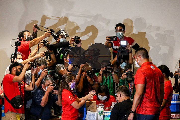• Image Description: A health worker inoculates a patient with the Sinovac COVID-19 vaccine inside a movie theater turned into a vaccination site in San Juan City, Metro Manila, Philippines.