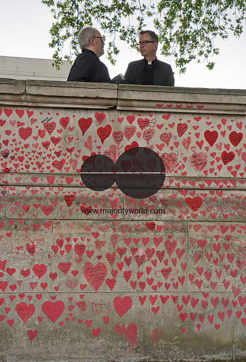 The National Covid Memorial Wall, a public mural painted by volunteers to commemorate victims of the COVID-19 pandemic in the United Kingdom. It is on the South Bank of the River Thames in London, opposite the Palace of Westminster, London, England, UK.