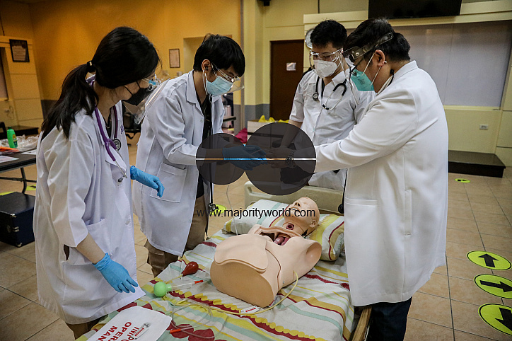 Manila, Philippines. June 10th 2021. A medical student wearing a protective mask as precaution against COVID-19 shows her health online decalaration form as students attend a face-to-face class at the University of Santo Tomas. The university started its limited face-to-face classes after the government allowed the resumption hands-on training and laboratory classes in campuses while observing health protocols to prevent the spread of the coronavirus disease.