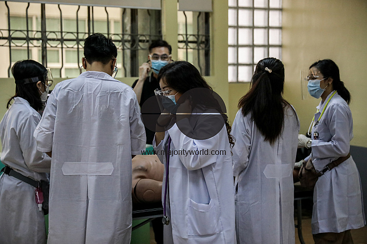 Manila, Philippines. June 10th 2021. A medical student wearing a protective mask as precaution against COVID-19 shows her health online decalaration form as students attend a face-to-face class at the University of Santo Tomas. The university started its limited face-to-face classes after the government allowed the resumption hands-on training and laboratory classes in campuses while observing health protocols to prevent the spread of the coronavirus disease.