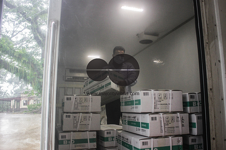 • Description: The Sinofarm Covid 19 vaccine donated by the Chinese government was brought to the Sylhet Civil Surgeon's office in a van containing coolers of Beximco Pharmaceuticals. Sylhet, Bangladesh.