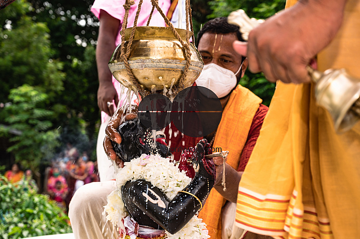 The âSnana Yatraâ is a bathing festival celebrated on the Purnima (full moon day) of the Hindu month of Jyeshtha. It is an important festival for the "Sanatana" or Hindu Religions. In the Indian border side village Tehatta, the deity Krishna is taken out of the temple and ceremonially bathed with milk, ghee (clarified butter), river water, and decorated for a public audience. Thereafter taken on a boat trip in the river. Tehatta, West Bengal, India.