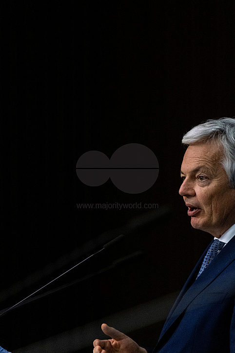 Didier Reynders, Justice Commissioner of the European Union at the EU ministers of European Affairs informal video conference, on 20 April 2021. The meeting is chaired by Ana Paula ZACARIAS, Secretary of State for European Affairs of Portugal. Brussels, Belgium.
