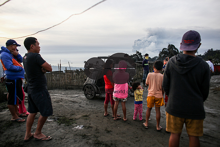 • Description: Residents watch as the Taal volcano erupts in Tagaytay, Cavite province south of Manila. Taal Volcano is a large caldera filled by Taal Lake in the Philippines. Located in the province of Batangas, the volcano is one of the most active volcanoes in the country, with 34 recorded historical eruptions, all of which were concentrated on Volcano Island, near the middle of Taal Lake. The last eruption was on January 12, 2020. Philippines.