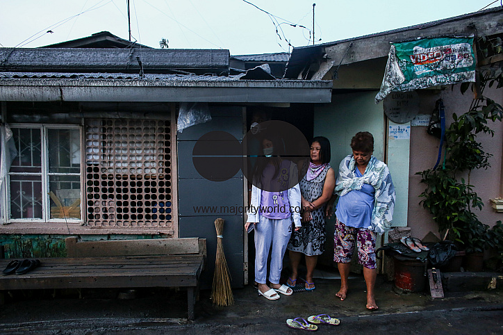 Residents look out from their homes coated in volcanic ash during an eruption in Tagaytay, Cavite province south of Manila. Taal Volcano is a large caldera filled by Taal Lake in the Philippines. Located in the province of Batangas, the volcano is one of