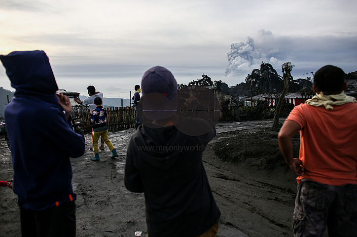 • Description: Residents watch as the Taal volcano erupts in Tagaytay, Cavite province south of Manila. Taal Volcano is a large caldera filled by Taal Lake in the Philippines. Located in the province of Batangas, the volcano is one of the most active volcanoes in the country, with 34 recorded historical eruptions, all of which were concentrated on Volcano Island, near the middle of Taal Lake. The last eruption was on January 12, 2020. Philippines.