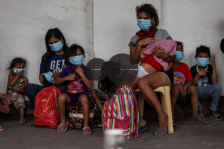 • Description: Families affected by the volcano wait to board a rescue truck outside a municipal hall in the town of Taal in Batangas province. Taal Volcano is a large caldera filled by Taal Lake in the Philippines. Located in the province of Batangas, the volcano is one of the most active volcanoes in the country, with 34 recorded historical eruptions, all of which were concentrated on Volcano Island, near the middle of Taal Lake. The last eruption was on January 12, 2020. Philippines.