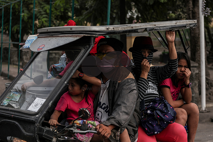 Vehicles on a street covered in volcanic ash in the town of Taal in Batangas province. Taal Volcano is a large caldera filled by Taal Lake in the Philippines. Located in the province of Batangas, the volcano is one of the most active volcanoes in the coun