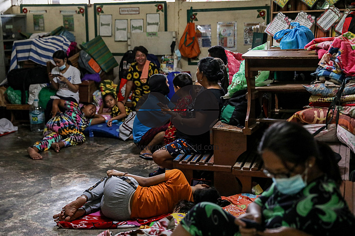 Residents stay inside a school turned into a temporary evacuation center as the Taal volcano releases smoke and ash in Agoncillo town, Batangas province south of Manila. Taal, the second-most-active volcano in the country, emitted a dark plume of steam and ash in a brief explosion, indicating a hazardous explosive eruption is possible in hours or days. The explosion posed the threat of another eruption prompting the evacuation of thousands of villagers inside the volcanoâs danger zone or high-risk areas. Philippines.