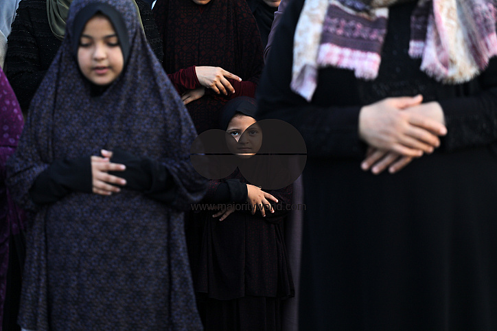 Palestinian Muslims perform the Eid al-Adha Morning Prayer at Al-Saraya Square. Eid al-Adha is the holiest feast in Islam, during which Muslims slaughter cattle and sheep to commemorate the willingness of the Prophet Ibrahim (Abraham) to sacrifice his son Ishmael. Palestine.