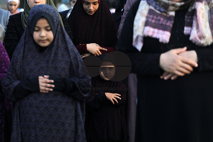 Palestinian Muslims perform the Eid al-Adha Morning Prayer at Al-Saraya Square. Eid al-Adha is the holiest feast in Islam, during which Muslims slaughter cattle and sheep to commemorate the willingness of the Prophet Ibrahim (Abraham) to sacrifice his son Ishmael. Palestine.