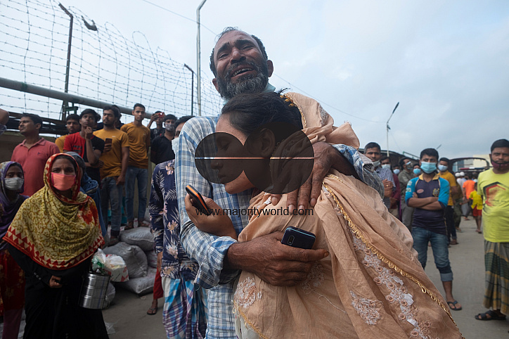 People are seen crying after family members died and got injured in a deadly fire that broke out at a food factory in Narayanganj's Rupganj. More than 50 people died due the fire that forced many workers to leap for their lives from the upper floors. Rupganj, Bangladesh.