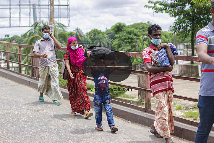 People are crossing the Kean Bridge on foot. Due to the increase of the coronavirus infection rates, lockdown was initiated all over the country including immediately after Eid Ul Adha. Law enforcement is high. Army and BGB are on patrol. Sylhet, Banglade