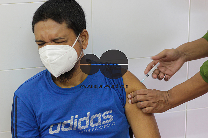• Image Description: Medical staff preparing the dose of the Moderna COVID-19 Vaccine at the M A G Osmani Medical College & Hospital vaccination center. Sylhet, Bangladesh.
