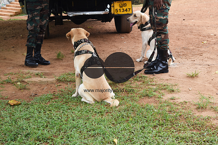 • Image Description: Labrador Retriever army dogs ready for searching the venue before a cricket match. At the picturesque Army Ordinance cricket grounds. Dombagoda. Sri Lanka.