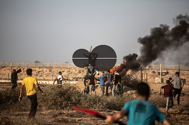 Palestinian demonstrators participate during a demonstration near the border between Israel and the Gaza Strip. A march organized by Palestinian factions on the border between the Gaza Strip and Israel in protest against the continuation of the siege impo