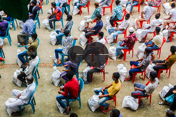 • Description: People are seated after receiving food from the General Secretary of Bangladesh Awami Juba League. Mohammad Mainul Hossain Khan Nikhil is distributing food to helpless people at the registry field on the initiative of Sylhet Metropolitan Juba League. Sylhet, Bangladesh.