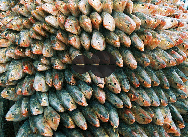 A pile of Hilsha fish unloaded from a trawler, on a push cart, at Fishery ghat in Chittagong, to be supplied in the markets. Bangladesh. July 11, 2008. Locally known as Ilish, it is the national fish of Bangladesh. Hilsa, always a special delicacy in a Be