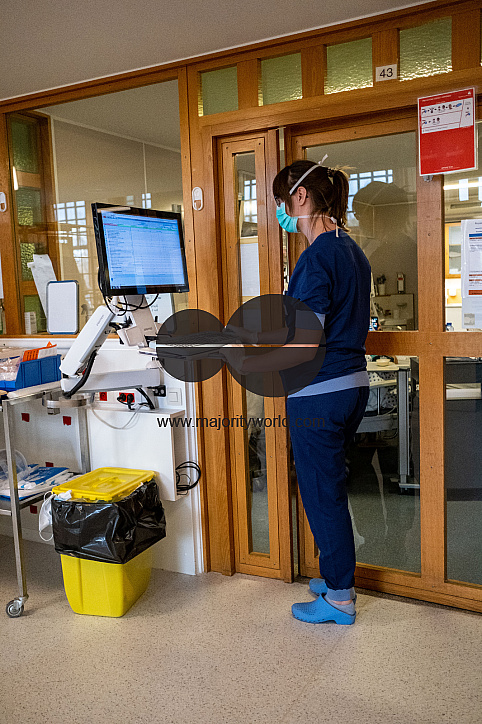 Medical staff monitoring patients at the Intensive care unit of the Liege hospital which is badly impacted by Covid 19. Liege, Belgium.