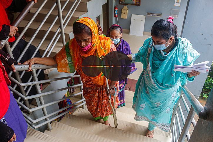 A disable person in line to take the 2nd dose of the Covid-19 Moderna vaccine. A nationwide mass vaccination campaign for the 2nd dose has started for 3 days from today. Sylhet, Bangladesh.