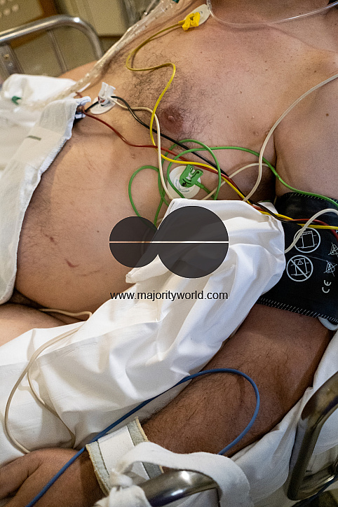 Medical staff monitoring patients at the Intensive care unit of the Liege hospital which is badly impacted by Covid 19. Liege, Belgium.