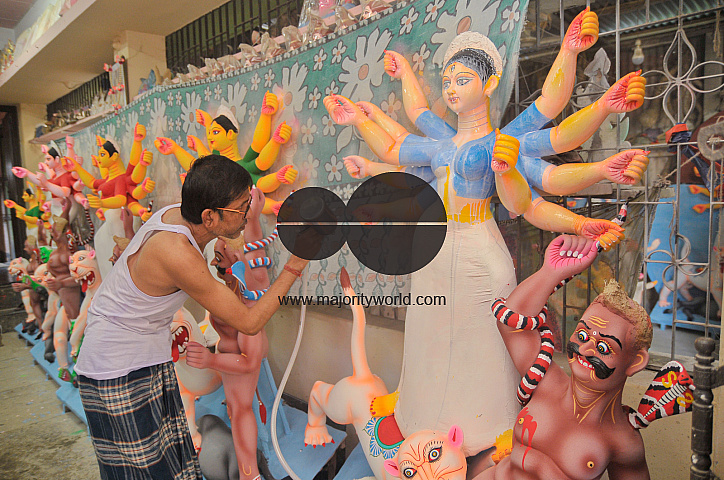 • Description: Sylhet, Bangladesh. 1st October 2021. Artist Nondi Paul, of Dariya Para Sylhet, is seen painting sculptures of Goddess Durga Idols in preparation for the upcoming traditional Hindu religious Durga Puja festival.