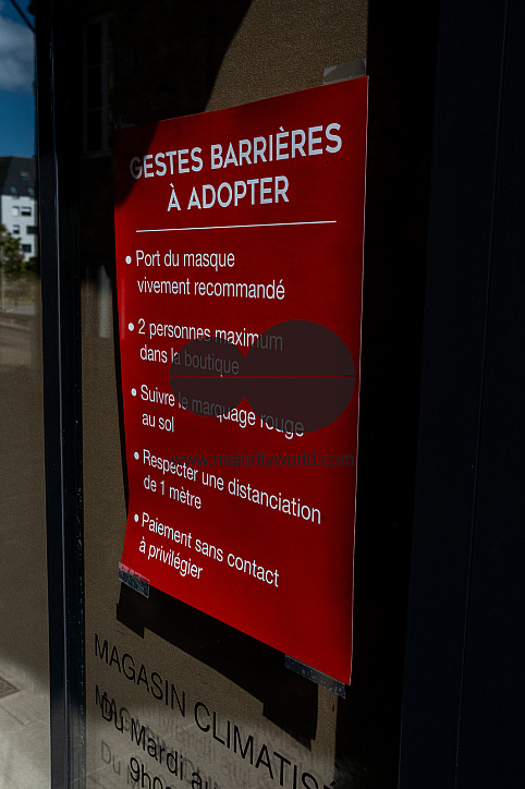 Coronavirus messages and safety measures at supermarkets, shops, restaurants, bars, cafes, pubs and other locations across the country. France.