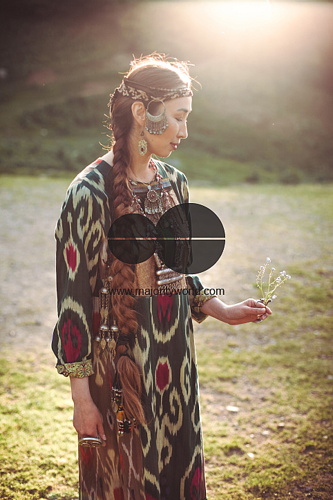 Kazakh clothing, worn by the Kazakh people, is often made of materials suited to the region's extreme climate and the people's nomadic lifestyle. It is commonly decorated with elaborate ornaments made from bird beaks, animal horns, hooves and feet. Althou
