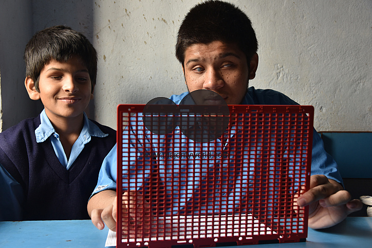 Students learning at the Louis Braille Memorial School located in Makhla area of Hooghly, West Bengal. The school provides services for persons from all categories of disabilities especially for the blind. Professional training is provided for the disable
