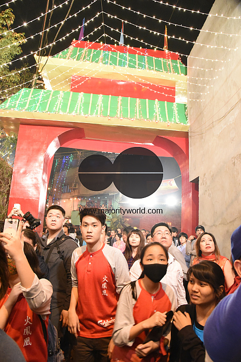 Celebrating Chinese New Year in Kolkata. The Chinese homes are spruced up and gaily decorated, Chinese restaurants gear up with special offers, and young people hold energetic lion dances, going around the neighborhood, visiting residential quarters, shops, etc. Public cultural programs are also organized. People from Kolkata can be seen flocking to the Chinatowns to enjoy the show. Kolkata, India.