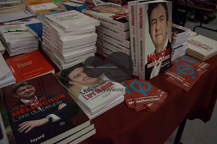 Political meeting of Jean-Luc Antoine Pierre Mélenchon, a French politician who presided over the La France Insoumise group in the National Assembly from 2017 to 2021. He has been the member of the National Assembly for the 4th constituency of Bouches-du-