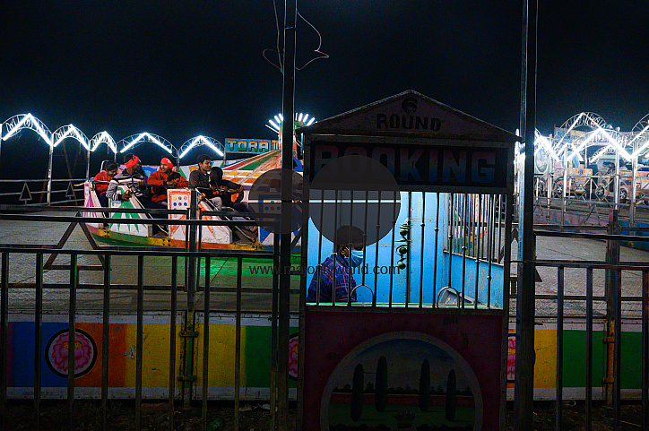 An annual rural winter fair. Due to the coronavirus people have been requested to use mask and sanitizer at all times. Tehatta, West Bengal, India.