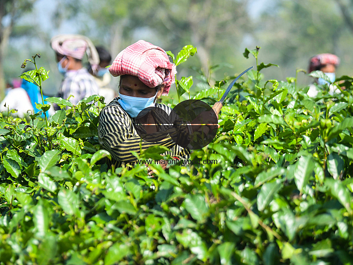• Image Description: Tea estate workers are wearing masks during work. Government guidelines have made masks compulsory to stop the spread of the new variant Omicron in Agartala. Tripura, India.