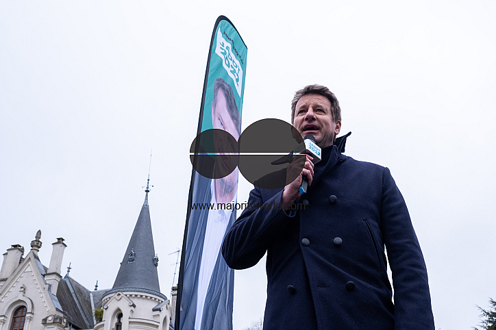 Yannick Jadot, Member of the European Parliament and candidate for the presidential election of the Europe Ecologie Les Verts (EELV) party, in Rennes to hold a meeting on the Place Hoche. Rennes, Brittany. France.