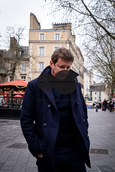 Yannick Jadot, Member of the European Parliament and candidate for the presidential election of the Europe Ecologie Les Verts (EELV) party, in Rennes to hold a meeting on the Place Hoche. Rennes, Brittany. France.