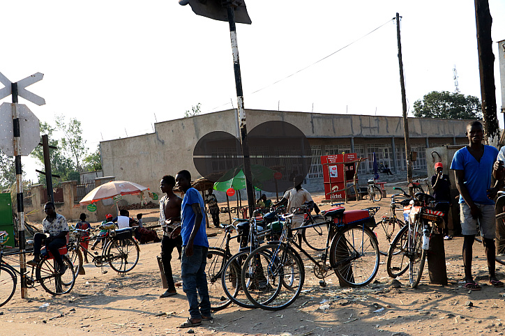 Cyclists wait for customers at Salima Trading Centre which is on the way to Lake Malawi. The bicycle is the most common mode of transport. Malawi.