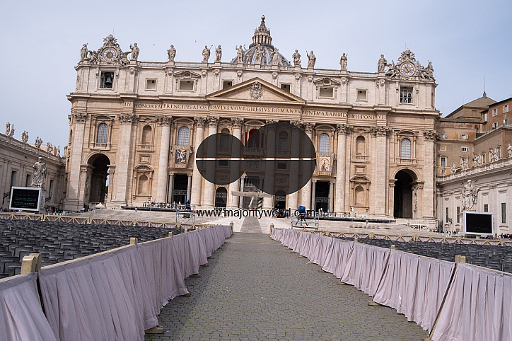 People in large numbers gather for the Easter Sunday service in St Peter's Square in the presence of Pope Francis. State of Vatican City.