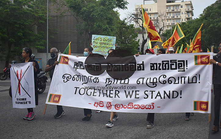 • Image Description: Colombo, Sri Lanka. 30th April 2022. Past students of leading Colombo Schools held a protest rally demanding the immediate resignation of the President, Prime Minister, and the Government. Majority of the people who were engaged in the protest were senior