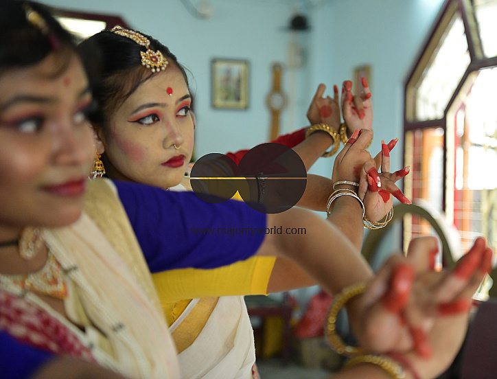 • Description: Students of classical dance group prepare for a dance class in a dance school on International Dance Day at Agartala. April 29th marks the International Dance Day. Agartala, Tripura, India.