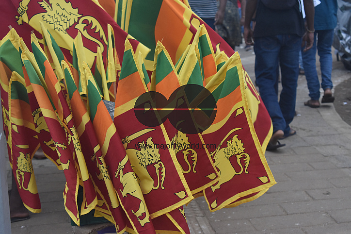 Colombo, Sri Lanka. 15th May 2022. Flags on sale. The protest continues amidst curfew and emergency law with the security forces allowed to shoot in case of violence. People gathered in large numbers on Vesak poya day at Galle face where the main protest has being held named Gota Go Gama for over a month.
