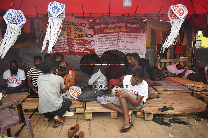 Colombo, Sri Lanka. 15th May 2022. The disabled war hero’s tent. The protest continues amidst curfew and emergency law with the security forces allowed to shoot in case of violence. People gathered in large numbers on Vesak poya day at Galle face where th