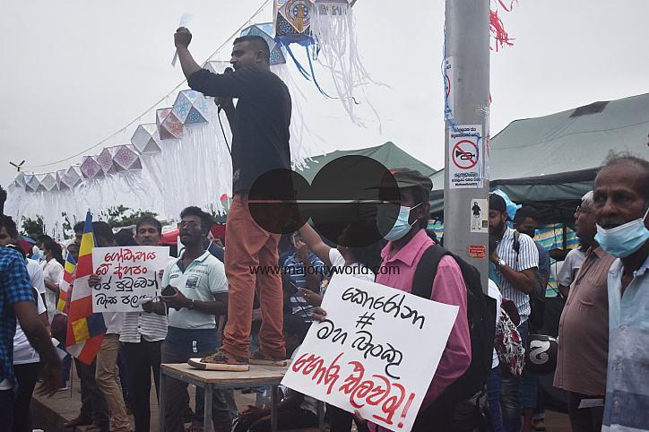 • Description: The protest continues amidst curfew and emergency law with the security forces allowed to shoot in case of violence. People gathered in large numbers on Vesak poya day at Galle face where the main protest has being held named Gota Go Gama for over a month. Colombo, Sri Lanka.