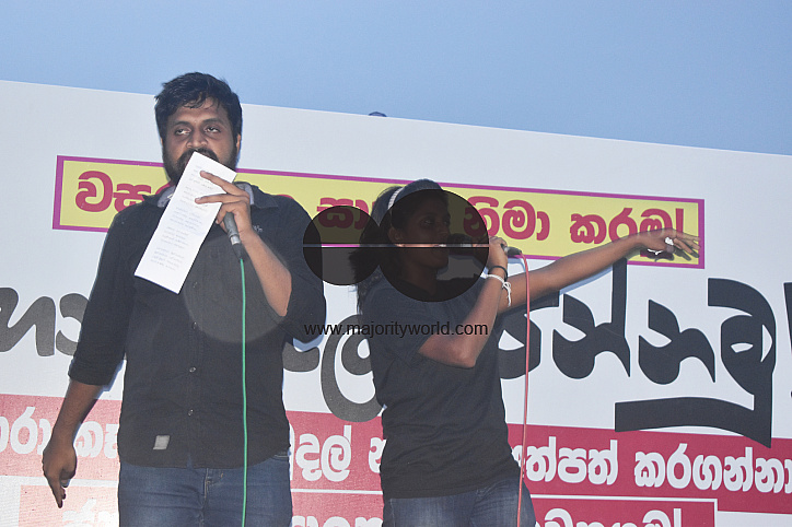 The protest continues amidst curfew and emergency law with the security forces allowed to shoot in case of violence. People gathered in large numbers on Vesak poya day at Galle face where the main protest has being held named Gota Go Gama for over a month. Colombo, Sri Lanka.