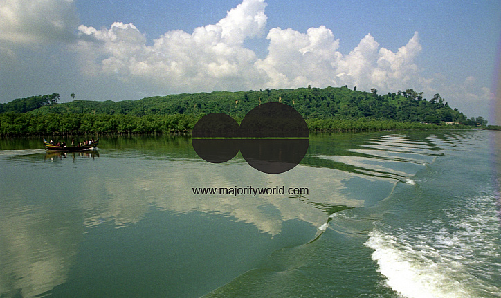 An enchantic view of mighty Naf river and Teknaf forest land on it's background at Saint Martin. St. Martin has been a popular tourist spot, known for its enchantic scenic beauty with th combination of hills and ridges. Bangladesh.